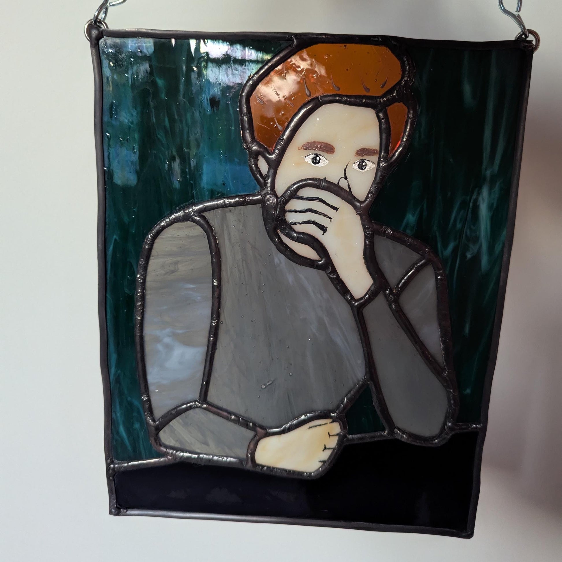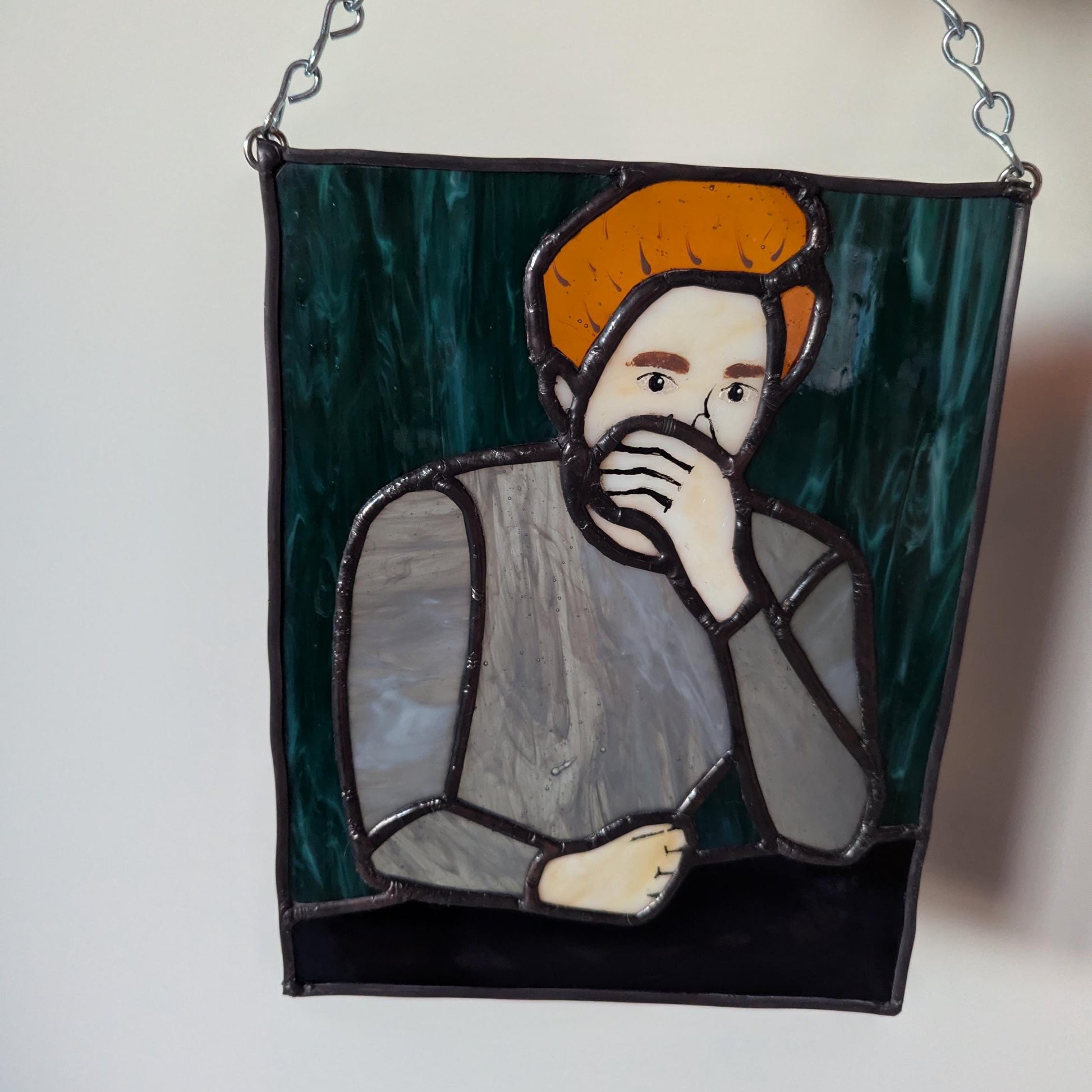 This is a stained glass sun catcher featuring Edward Cullen at his desk in biology class covering his face because Bella Swan just walked in. Does she stink or does she smell delectable? Watch the movie or read the books to find out. In the meantime, get this sun catcher for the Twilight lover in your life. Hang this beauty in your bathroom to really put this piece to maximum use.
